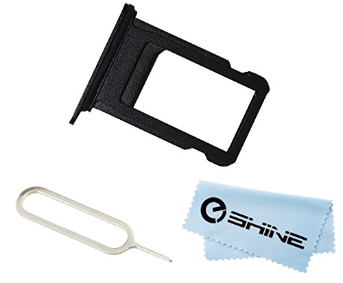 EShine SIM Card Holder Slot Tray Replacement + Sim Card Remover Eject Pin Key tool for iPhone 7 Plus 5.5-inch (ALL CARRIERS)+ EShine Cloth (Black)