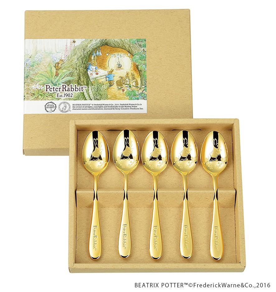 fk094igrjs皿中レーザーシリーズのカトラリーセットですサイズ全長:約132mm個装サイズ:16×18×3cm重量約23g個装重量:176g素材・材質ステンレススチール(金メッキ)仕様食洗機・乾燥機不可セット内容ティースプーン×5本製造国日本可愛らしいピーターラビットのカトラリーセット皿中レーザーシリーズのカトラリーセットです
