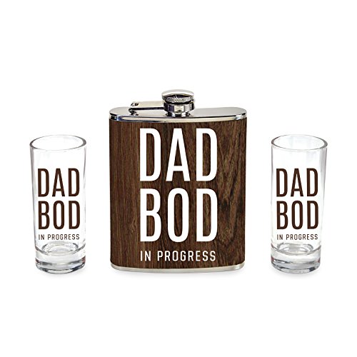 -. Title : Wild Eye Designs Flask & Shot Glass Set Dad Bod