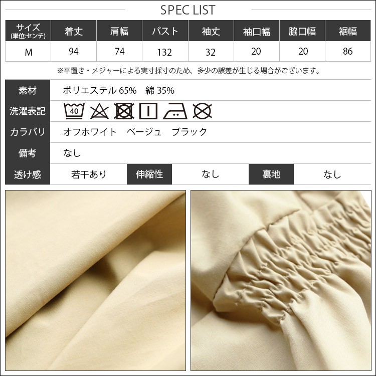 実寸:着丈 94cm 肩幅 74cm バスト 132cm 袖丈 32cm 袖口幅 20cm 脇口幅 20cm 裾幅 86cm