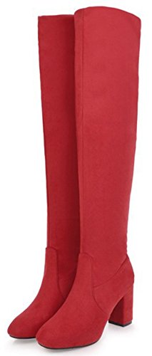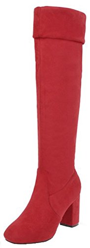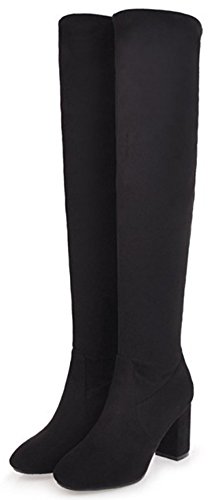 (Mofri)/Women's/Boots/DIRECT FROM USA/Mofri Women's Dressy Block High Heel Round Toe Faux Suede Pull On Skinny Knee High Riding Boots