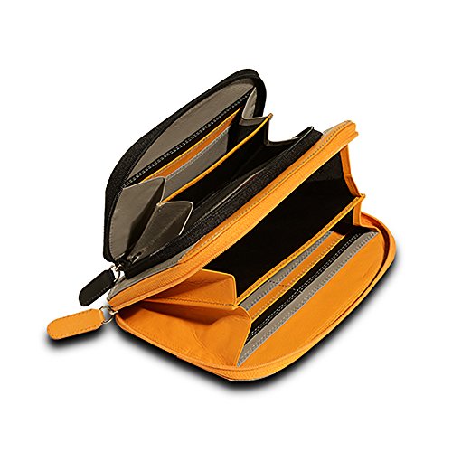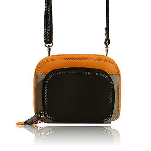 Visconti BRB-18 Kim is a beautiful woman's multi colored Purse Bag , purse /wallet with an adjustable shoulder strap. Kim is from the beautiful Barbella Visconti Mini Bags Collection. BRB18 has two main zippered Compartments. First Zippered compartments has 8 credit card slots, slip in pocket, and an open compartment. The second zippered compartment also has two slip-in pockets and one credit card slot, plus an open compartment. The wallet is a beautiful multi-colored combination of many different colors in a Choice of Red Multi, or Black Multi. Leather is super soft , durable, and contrast stitched. BRB-18 comes with an adjustable shoulder strap so that wallet can be worn securely. Great for traveling and fun for everyday use. Visconti is a leading U.K. brand of quality wallets sold in upscale luggage stores and department stores across Western Europe. Visconti's eye-catching range of leather made bags, briefcases, wallets and purses are designed to suit demanding needs. Blending the finest leather with years of experience in bags manufacturing, Visconti offers its clients the perfect combination of durable, practical and affordable design.Feature