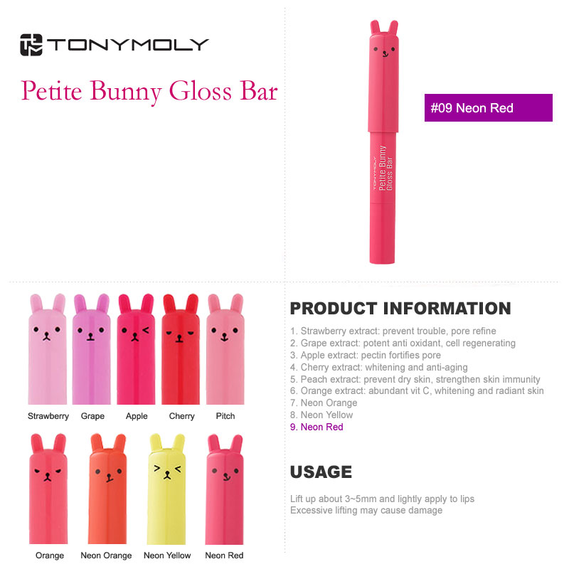 #9 Neon Red Tonymoly Tony Moly Petite Bunny Lip Gloss Lipstick 2g