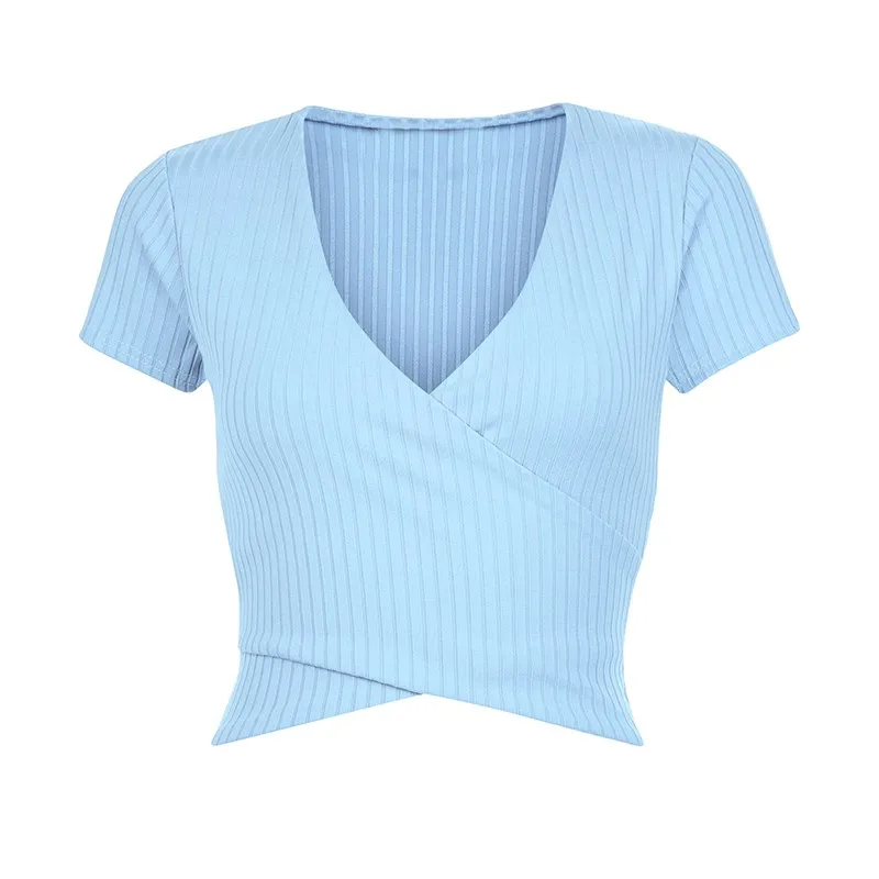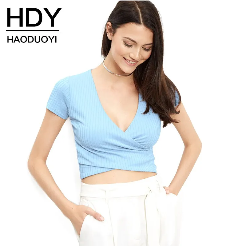 | HDY Haoduoyi 2016 Autumn Fashion Women Solid Blue Cross Stripe Slim Short Crop Top Short Sleeve Plunge Neck Casual T-shirt | |||||||||||||||||||||||||||||||||||||||