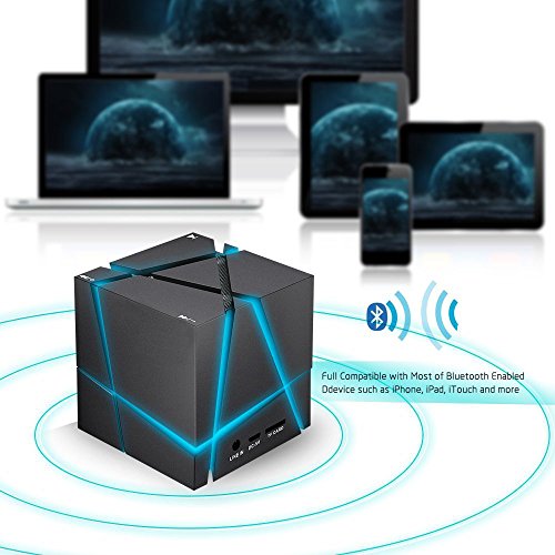 -. Feature : ♫【Bluetooth Stereo Magic Cube Music Player】Features Bluetooth 4.0 Technology, Long Transmission Distance up to 10 Meters. Built-in lithium battery; Built-in microphone, enabling hands-free cell phone voice calls; Built-in FM radio. / ♫【Colorful LED Lights】Brilliant lighting design has a unique multi-color, look more beautiful, but also can be when the speaker when decorations really kill two birds with one stone. / ♫【3D Dynamic Bass Engine】Dual Sound-Proof High Performance S-Bass Deep Bass, Let the Bass is More Shocking, More Melodious the Treble, Midrange Clarity. Using high-fidelity speaker, make the sound more natural and delicate. / ♫【Small and portable】Let you listen to your music, videos or games wherever you are. Put it in your bag and off you go. Enjoy sound whether it's on the beach, at a party, or simply in the garden or kitchen, you can do it wirelessly with this speaker. / ♫【Compatibility】Enable Directly Playing MP3 Files in TF / Micro SD Memory Card; Meanwhile, you also can enjoy Music via AUX cable. Support for iPhone SE 6 6 Plus 5S 5 5C 7 7Plus iPad Pro Air Mini Samsung Galaxy S8 S7 S6 Edge S5 S4 Note 3 Sony HTC M8 MP3 MP4 CD Player Tablet Laptop PC. As long as your device can connect with Bluetooth.
