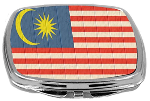 Rikki Knight Compact Mirror on Distressed Wood Design, Malaysia Flag, 3 Ounce