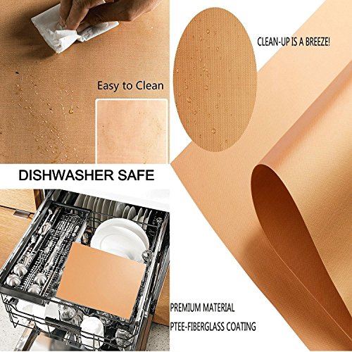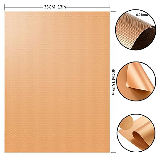 Temperature Resistance---These barbecue cooking mats which are made of heat-resistant technologically advanced materials, Copper Grill Mats Heat resistance up to 260 ℃/500℉