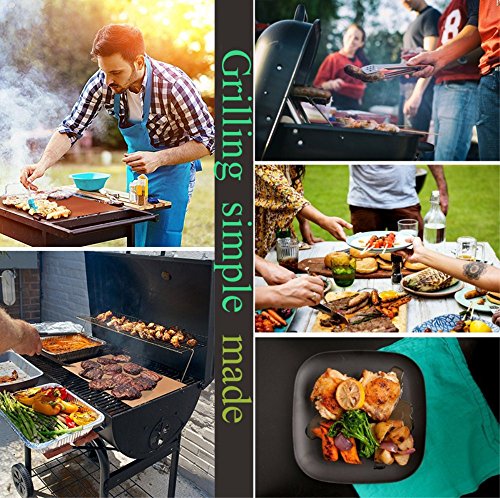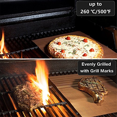 100% NON-STICK - Non-stick Teflon Heat Transfer Paper 100% Non-Stick means you can grill without grease and mats are reusable for years! Non-stick BBQ grill mat prevent even the smallest morsels from falling through the grates. Keep your grill looking brand-new and no more clean-up of your dirty grill!