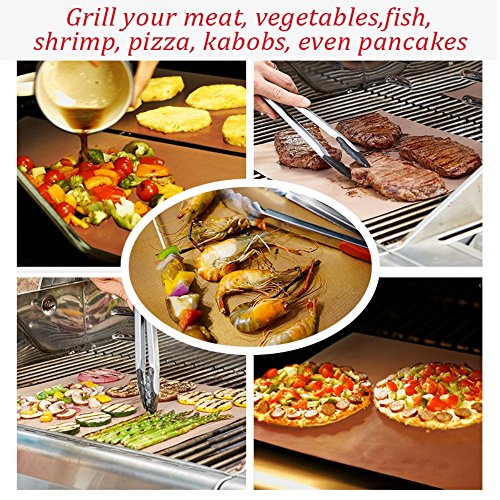 copper grill mats for gas grills & Baking Mats Non-stick FDA-Approved teflon Fiber BBQ grill mat PFOA Free, Reusable and Easy to Clean - Works on Gas, Charcoal, Electric Grill Set of 3