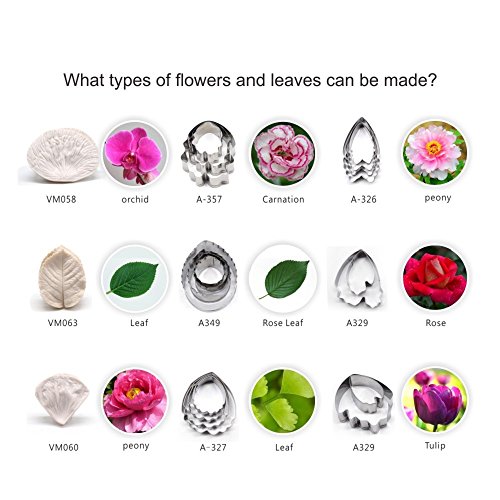 AK ART KITCHENWARE Leaf and Flower Tool Kit 12sets Silicone Veining Mold 5sets Petal Steel Cutters 1 Veining Board 1 Flower Foam Pad 10 Brushes 3 Frilling Sticks 4 Cake Carved Pens 8 Modelling Tool