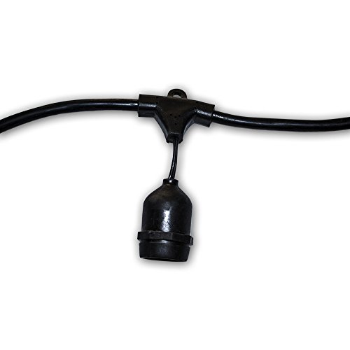 - 24 weatherproof light sockets strung on 48-ft black 14-guage cord, spaced 2-ft apart