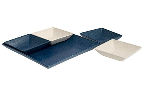Studio : EVO Sustainable Goods Publisher : EVO Sustainable Goods Binding : Kitchen Product Description These vibrant wpc (wood plastic composite) serving dishes are a fun and way to serve snacks to friends and family. Contains one lightweight large snack tray, perfect for appetizers of all kinds, with 4 small snack dishes that fit perfectly inside, perfect for dipping sauces and small treats. Working in harmony or independently, this set is a must have for any host. As always, these BPA free products are dishwasher and microwave safe. 0