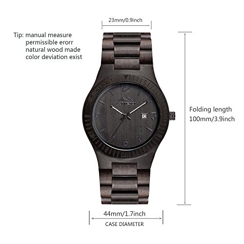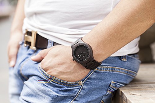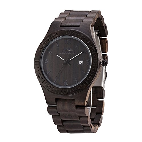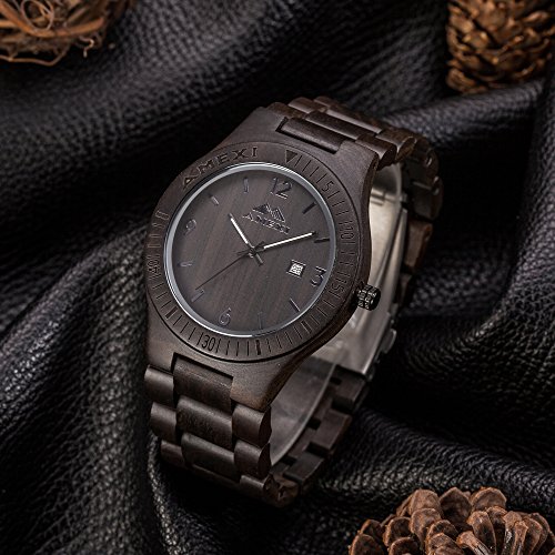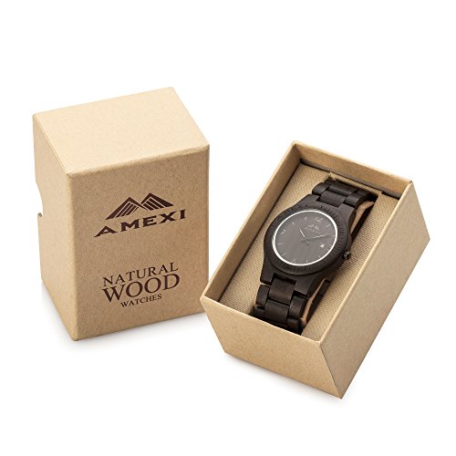Amexi 목제 손목시계 100% 순천연의 검은《뱌쿠단》제 시계 아날로그 미요타 쿼츠 무브먼트 밴드 컬러