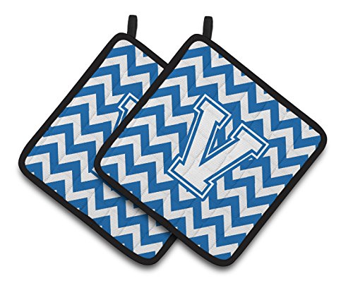Caroline's Treasures Letter V Chevron Blue & White Pair of Pot Holders CJ1045-VPTHD, 7.5HX7.5W, Multicolor