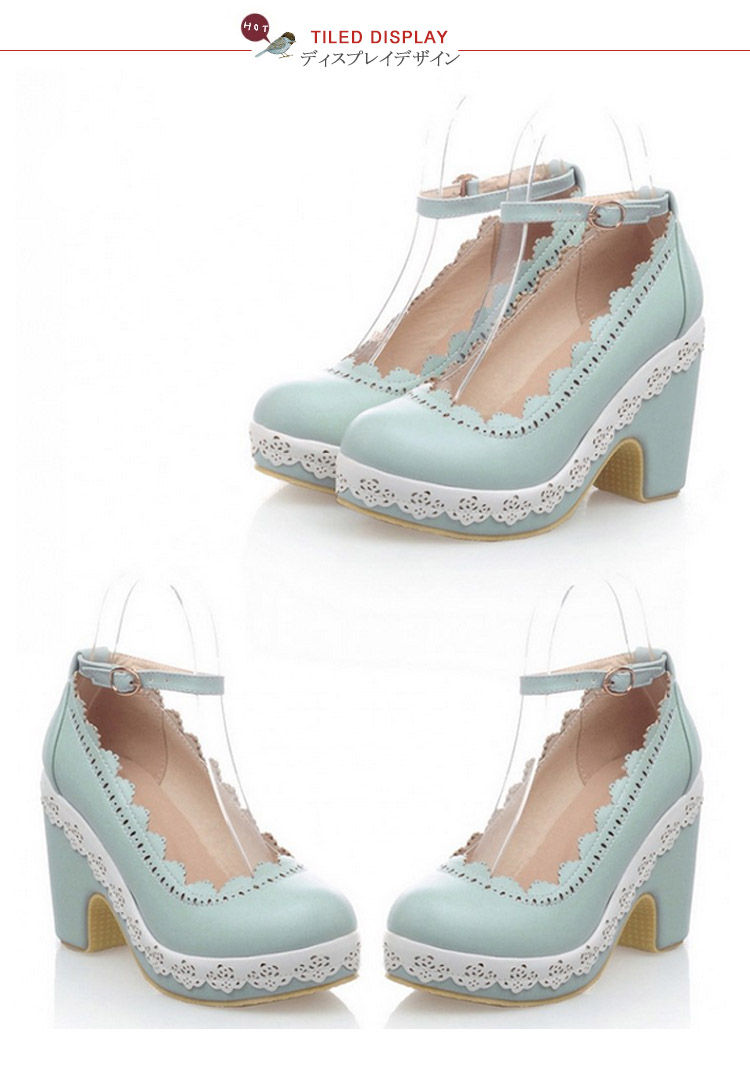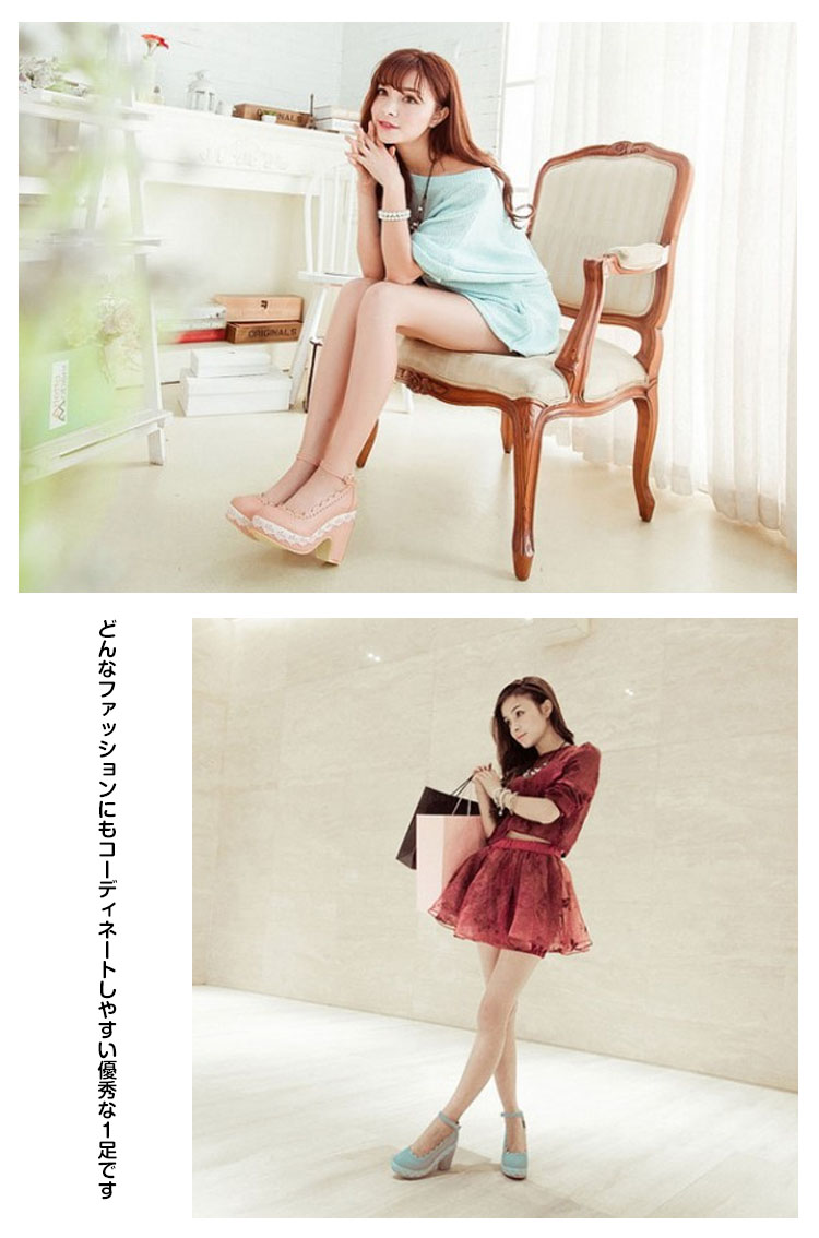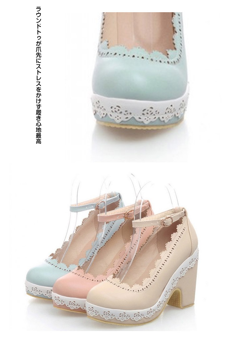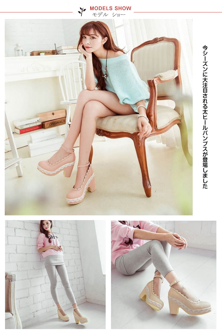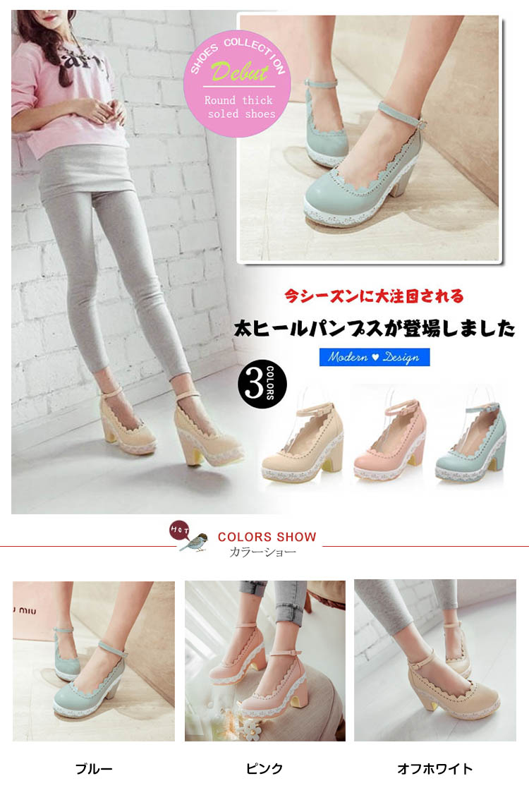 | 今シーズンに大注目される太ヒールパンプスが登場しましたレースのように見える飾りがポップで、女の子らしさを演出してくれます太ヒールにストラップ付きで歩きやすく安定感抜群どんなファッションにもコーディネートしやすい優秀な1足です | |