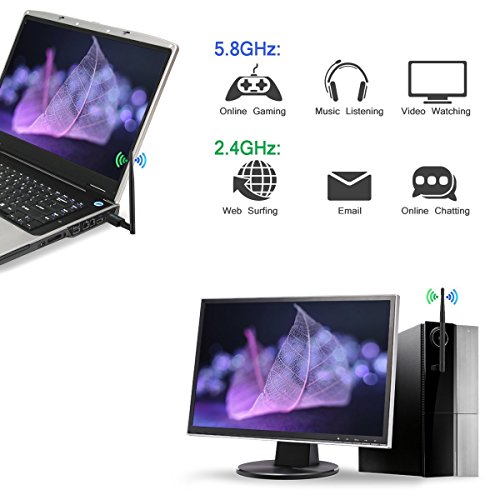 Studio : BENGIX Publisher : BENGIX Binding : Electronics Product Description Wireless USB Wifi Adapter Dual Band 2.4G/150Mbps 5.8G/433Mbps AC 600Mbps with 5dBi High-gain Antenna Support Windows 10/7/8/XP/VISTA Mac OS X/Linux 5.8G only work for dual band router Wireless Network Speed AC 600Mbps dual band wireless adapter,The best experience for internet surfing, video streaming or online gaming. Upgraded 5dBi antenna provide larger signal coverage and more stable signal effect. Installation Easy -Install the driver from the CD disk included and then you plug the adapter and get the wifi connected. -for the laptop or computers don't have the CD slot, then you can download the driver from:Https://goo.gl/Hde7gF AP Mode you can create a wifi hotspot for other devices with the AP Mode function. Even if just with the wired internet connection. Best customer service and warranty as a professional seller on Amazon, we offer the fast response and best customer service for you. Besides, we promise to provide you one-year-warranty. Specifications : - Model: wifi adapter-5dBi - Standard: IEEE802.11a/b/g/n 802.11ac - WiFi Band: Dual Band 2.4G or 5.8G - Antenna: 5dBi - Interface: USB 2.0 - Support System: Windows XP/Vista/7/8/10/ Mac OS X /Linux Packing list : 1 x USB Wireless Wifi adapter 1 x 5dBi Antenna 1 x CD 1 x User manual