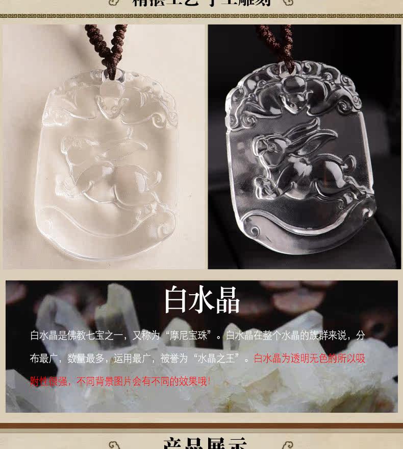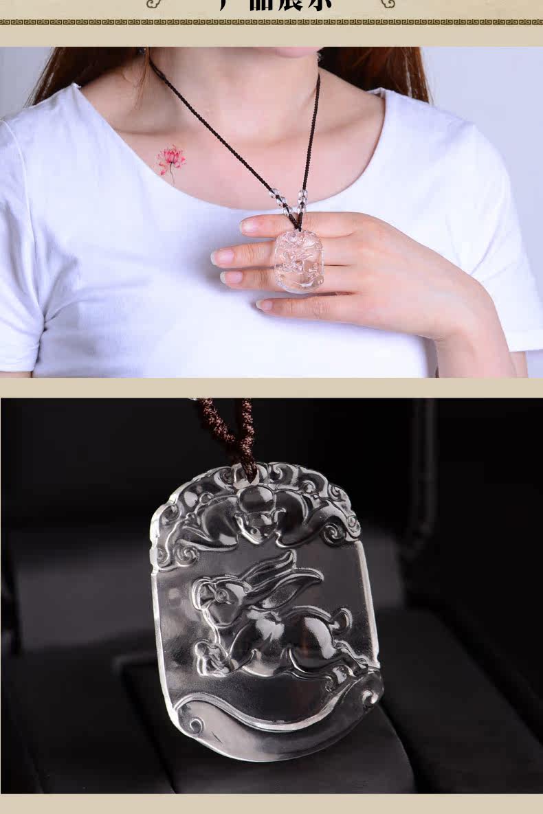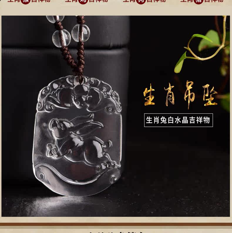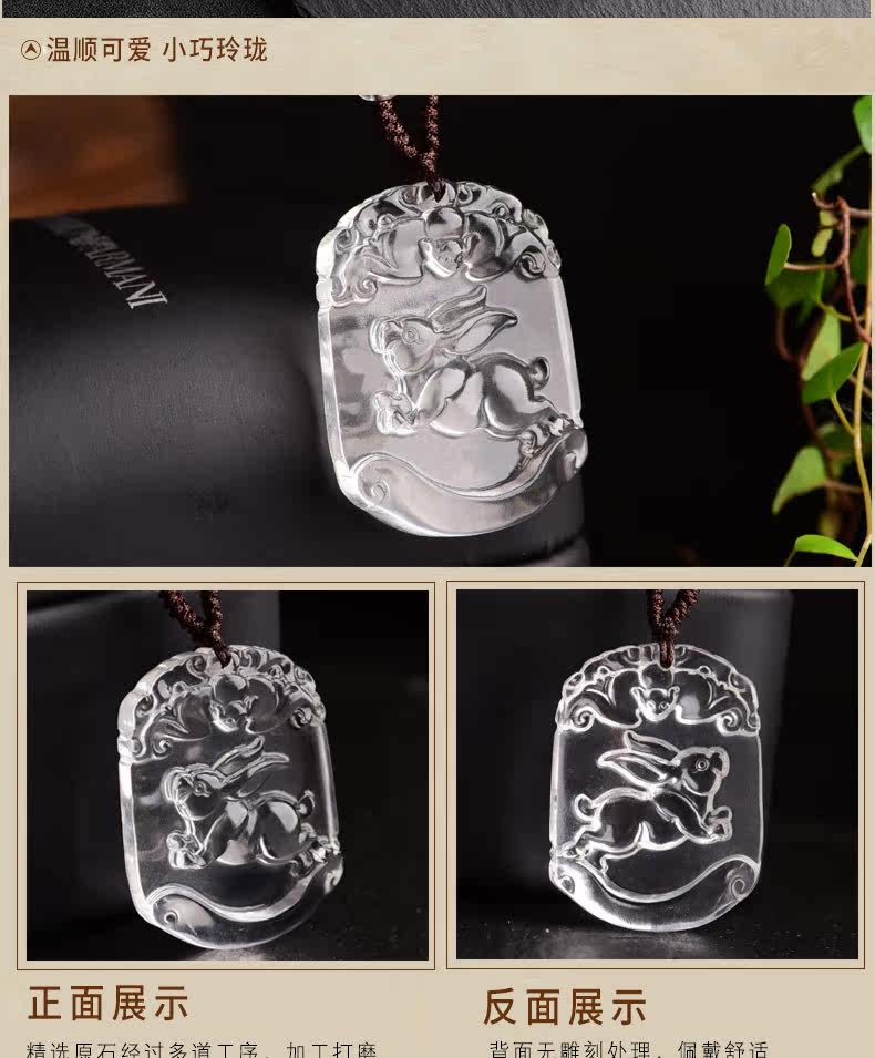 开光天然白水晶十二生肖吊坠属兔男女士款项链饰品礼物挂件