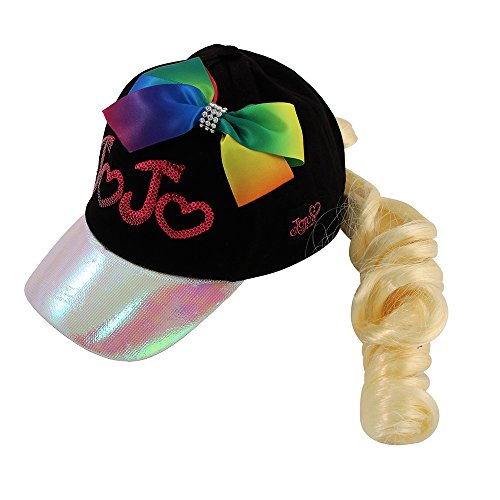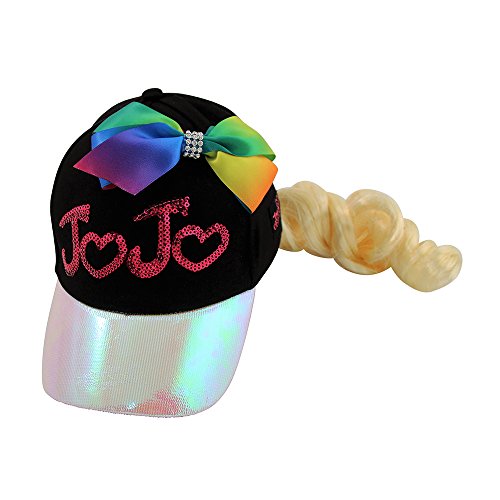 Product Description This JoJo Siwa-themed cap features a long blonde ponytail, sublimated gold stars and wording, and JoJo's iconic big bow in a rainbow color. 0