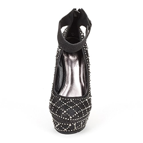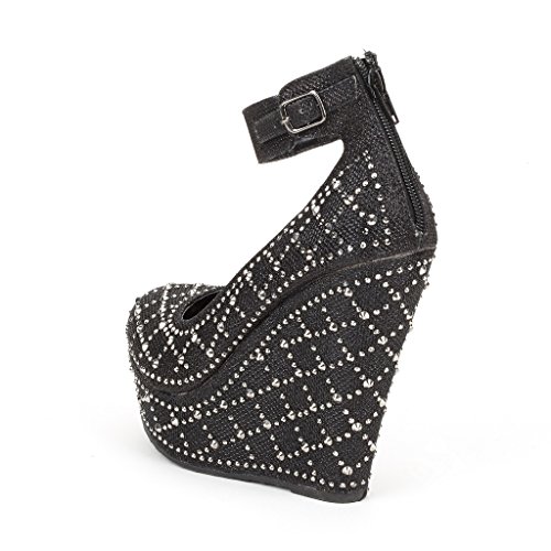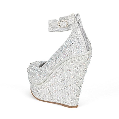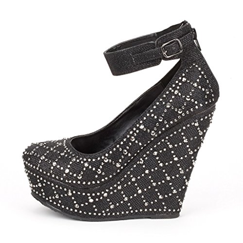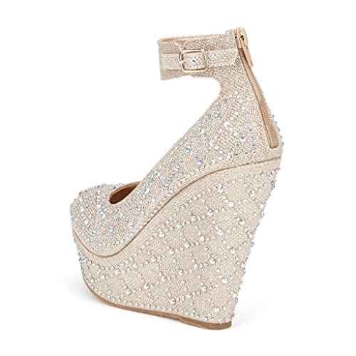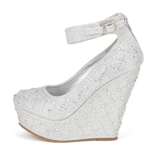 -. Title : Dream Pairs CHAOS Women's Glitter High Heel Rhinestones Ankle Cuff Round Toe Platform Wedge Pump Shoes