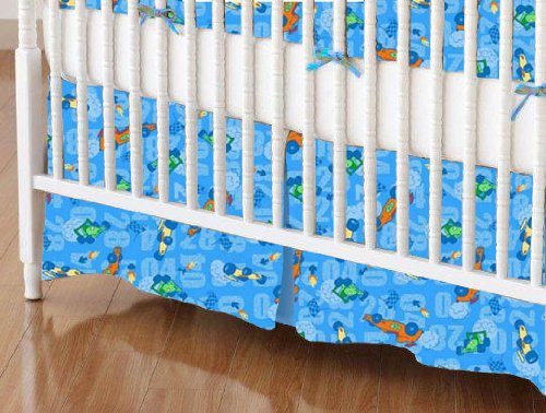 -. Title : SheetWorld - MINI Crib Skirt (24 x 39) - Race Cars Blue - Made In USA