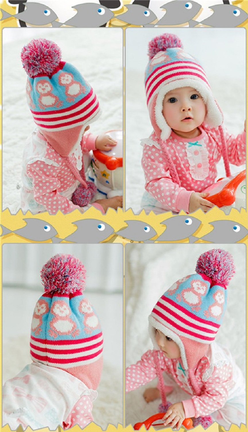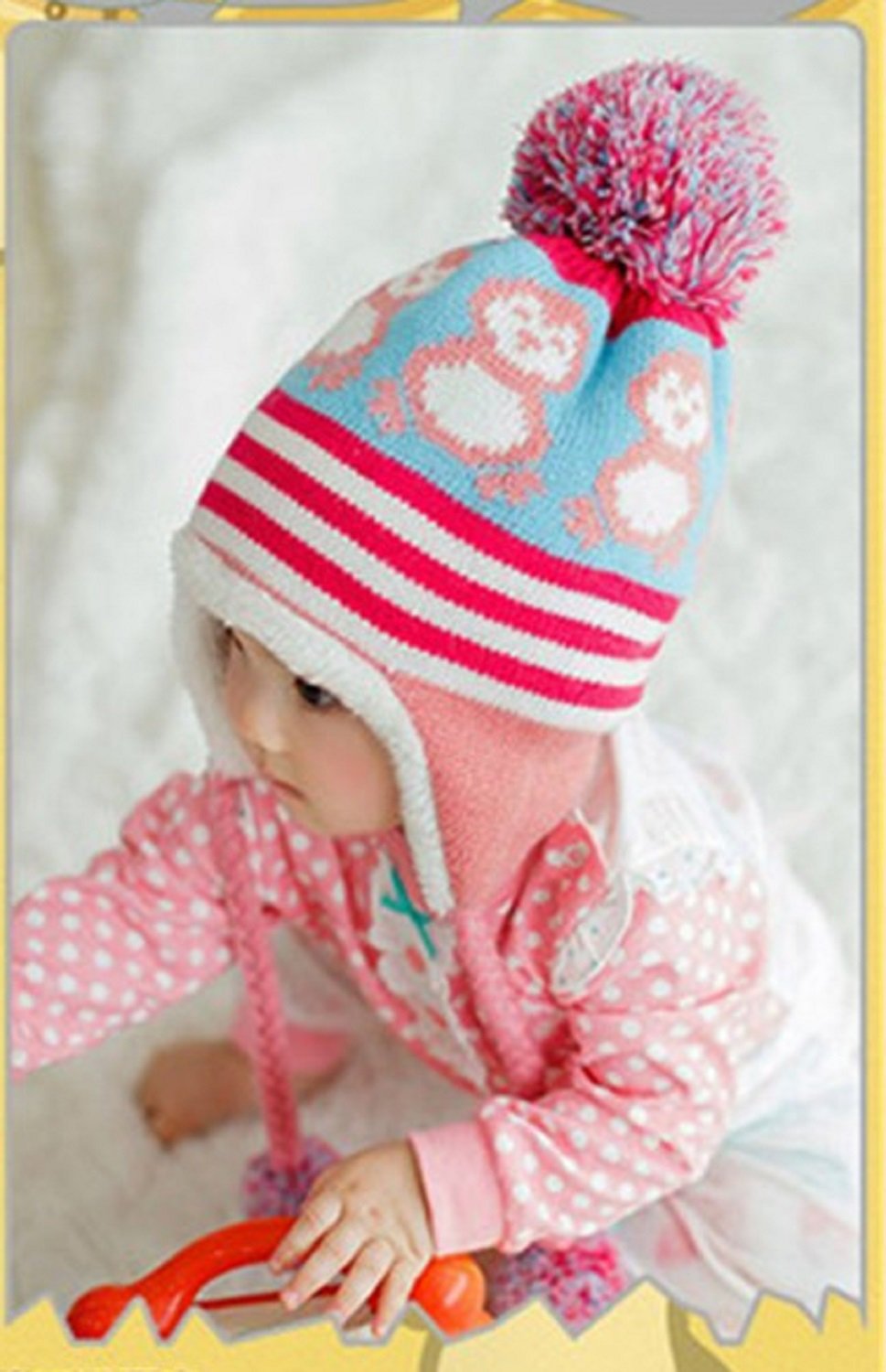 (Wild Magnolia) Was there Baby Bonbon Knit Hat Earmuffed Hat Back Bore Brushed