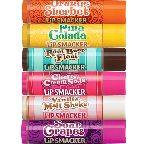 -. Feature : Lip Smackers in: Cherry Cream Soda, Root Beer Float, Vanilla Malt Shake, Orange Sherbet, Pina Colad & Sour Grapes / Collectable Tin / 6 pcs total net wt 0.84 oz.