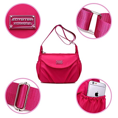 -. Brand : SOYATER -. Department : womens -. Feature : HIGH QUALITY MATERIALS - Durable compound twill nylon fabric and polyester lining. Solid plated zinc zippers and other hardware. / PERFECT SIZE - A perfect size (11.4" W x 10.6" H x 3.9" D) and shape is proportionate to any person's body type and flatters your body. Useful interior and exterior pockets and compartments are great for organization. / LIGHTWEIGHT - Get shoulder and back pain relief by changing the heavy bag you carry all day. The ideal weight of a handbag, according to a USDA study is under 2.2 pounds (meanwhile SOYATER crossbody bag S6057 weighs 0.66 pounds). / WIDE ADJUSTABLE STRAP - You can play with the length (drop up to 27") and have it best for your height. The 1.5" wide strap distributes the weight over a wider area, won't cut into your shoulders and is ergonomic. / WATER RESISTANT - You will for sure enjoy amazing experience while relaxing outdoor with the help of your water resistant SOYATER crossbody bag S6057. Another obvious advantage is you will be able to effectively and easily clean up your bags without any form of trouble and without much time to dry up. -. PackageQuantity : 1 -. ProductGroup : Shoes -. ProductTypeName : HANDBAG -. Size : Medium -. Title : SOYATER Nylon Top Zip Cross Body Bag S6057, 6 Colors Available