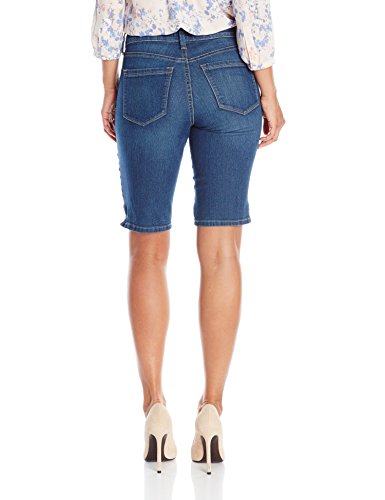 This jean short hits right above the knee and is made in a lightweight, soft denim in a classic medium blue wash. Features classic 5 pocket styling, zip fly, button closure and small out seam slit for added comfort.Feature