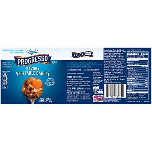 Progresso Soup, Low Fat Light, Savory Vegetable Barley Soup, 18.5 oz Can