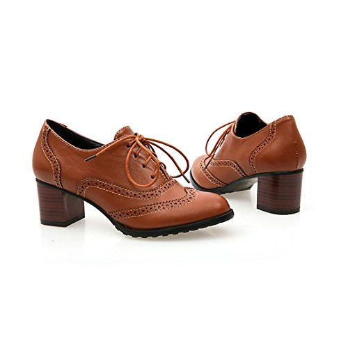 England Brogue Shoe Womens Lace-up Mid Heel Wingtip Oxfords Vintage Leather Shoes