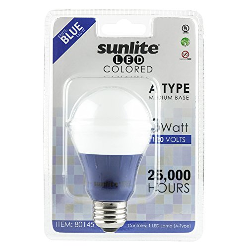 Sunlite 80145 Blue LED A19 3 Watt Medium Base 120 Volt UL Listed LED Light Bulb, last 25,000 Hours