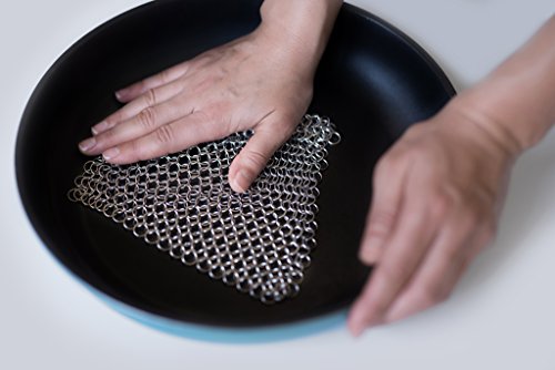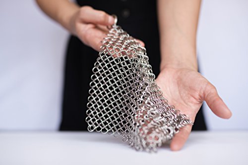 -. Feature : • EAST TO USE - Alleviate yourself from skillet cleaning worries; cook sumptuous dishes on your skillet and amaze everyone. Cleaning cast iron skillets is a breeze with this cleaner. / • IT IS DISHWASHER SAFE and is made of high quality stainless steel. Easily cleans your cast iron utensils and other cookware such as cookie sheet, baking sheet, cauldron, tea pot,dutch oven,waffle maker,wok, hibachi, tortilla press,griddle, pie pan etc. / • LIGHT IN WEIGHT convenient to use and easy to carry and store. You can take it for camps and travels and never allow grit to tangle on your cast iron skillets again. / WILL NOT SCRATCH YOUR PANS - Chainmail Scrubber design that Each Ring Hand Formed for Smoothness, Strength and Comfort, only the round ring touch the pans keep it seasoned without any scratches - satisfaction guarantee. / GIFT EBOOK - "Cook like a Chef" - 101 Tips and Techniques for Cooking Like a Chef.
