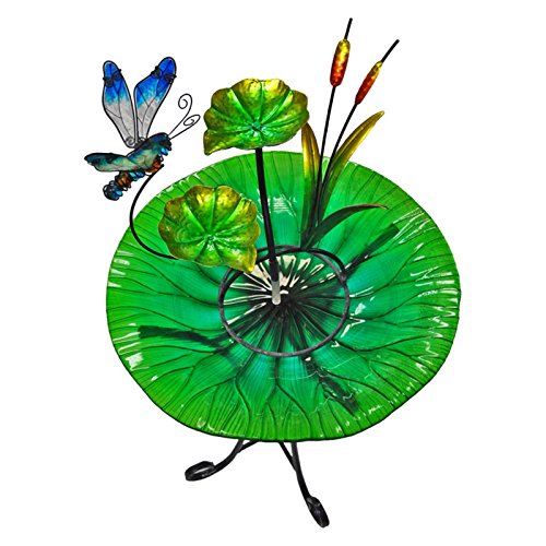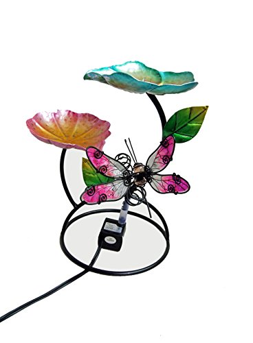 Beautiful metal and glass dragonfly fountain and pump included is a cute addition inside your home or in your backyard. Glass bowl and stand sold seperately.
