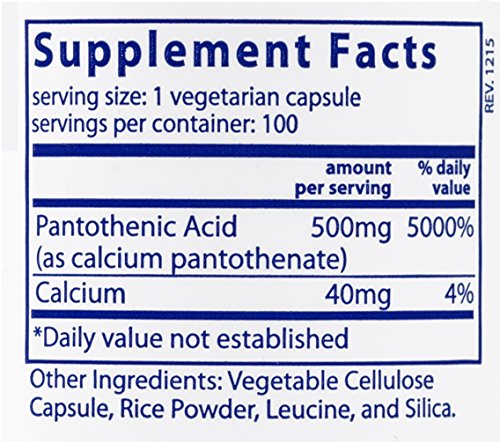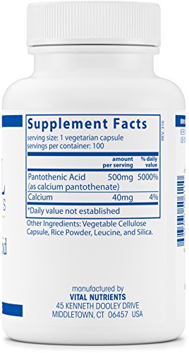 -. Title : Vital Nutrients - Pantothenic Acid 500 mg - Vitamin B5 - 100 Capsules
