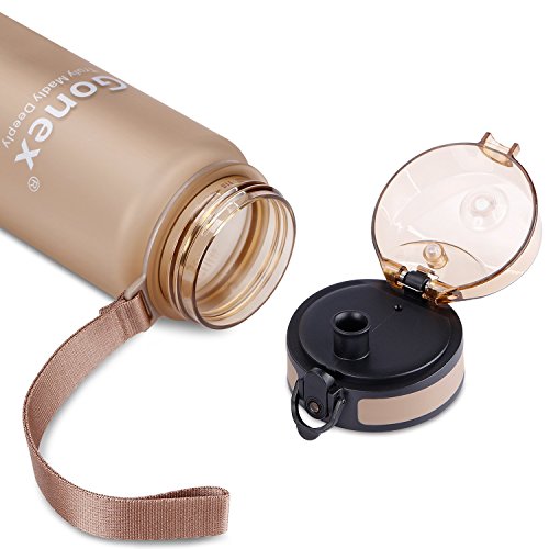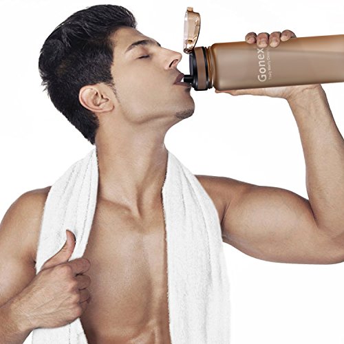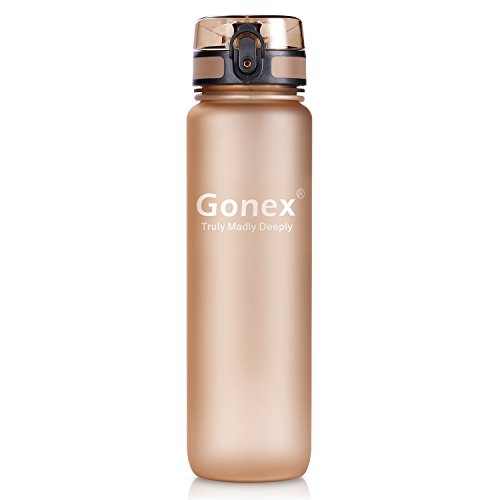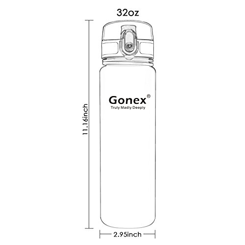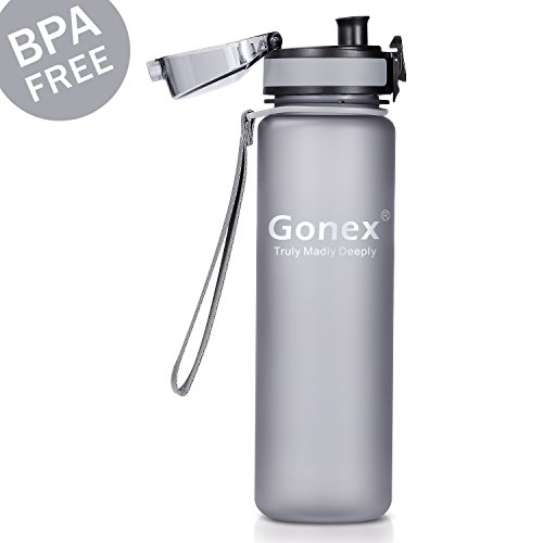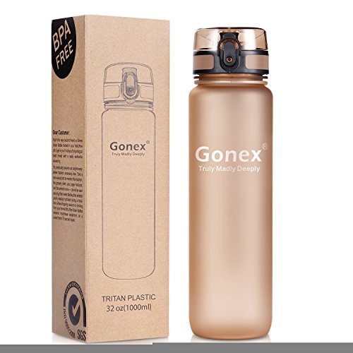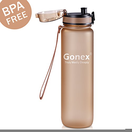 -. Feature : Tritan plastic: BPA-free. Our Gonex bottles are made from 100% non-toxic imported Tritan Co-polyester plastic, which is do no harm to our body and it is environmentally friendly. What's more, its environmental material makes it SAFE even you pour the 100 ℃ hot water in it. Gonex water bottle is the right choice since it is durable, non-toxic and safe. / Fashionable design: It is premium quality single wall design that is unlike the other dull, off the shelf water bottle. It looks more practical and functional than any other water bottle. It is ergonomically shaped to make one-handed use a breeze, with a special reflective frosted casing. The Nylon Carry-strap is tough enough to hold the bottle filling with water. It is large enough to carry full bottle water for whole day drink especially for someone who likes outdoor sports. / Lightweight:This type is 32 ounce, 1000ml, which is tough durable and resistant to impact. Its air hold design that places on the lid ensures fast flow of water with effortless drinking. There is a one-handed push of a button on the top of the special spill-proof. / Bottle Mouth: Consistent with the lip, which avoids being choked by fast drinking. And its top air hold makes the bottle 100% leak-proof and dirt-proof. It is also very easy to open the bottle with just only one-click, slide your hand into the side strap and start drinking. The Gonex bottle is perfect for running, gym, yoga, tennis, hiking, office use or travelling. / Guarantee: We want to be the best choice that you have options here, and that's why we offer a 100% satisfaction guarantee. If our product doesn't meet your standards for any reason, just send it back for a replacement or a full refund.
