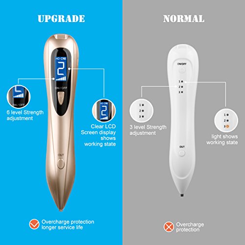 Newest Upgrade Version:6 strength level for different skins can clean your skin tags step by step.Our mole removal pen is rechargeable with overcharge protection longer service life.(Charge one time it can work more than five hours.)Designed with an LCD display shows the working level and battery level.It also helps you control the device better.