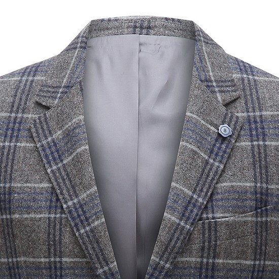 - 클래식한 체크 패턴이 돋보이는 남성 자켓.
