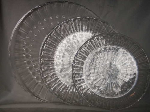 3 Clear Acrylic Round Serving Trays 9.5"-12"-13.5"dia Crystal Cut Look Plastic