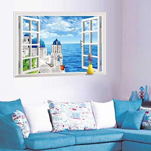 -. Title : Amaonm® Huge Removable 3d Window View Wall Art Wallpaper Mural Windows Decorations Wall Decals Wall Sticker Peel & Stick