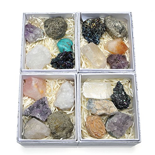 - Set #1:Amethyst Cluster+Rose Quartz+Geodes Crystal+Tourmaline Quartz+Pytite Ctystal; Set #2:Amethyst Cluster+Geodes Crystal+Pytite Ctystal+ Silicon Carbide +Turquoise; Set #3:Amethyst Cluster+Pytite Ctystal+ Silicon Carbide +Quartz Point+Citrine Point; Set 4: Calcite rhomb +Sand rose +Tektite +Amethyst Cluster + Celestite.