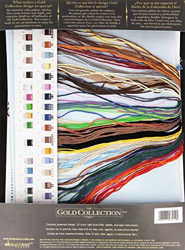 - Contains presorted thread, 16 count light blue Aida, needle and instructions