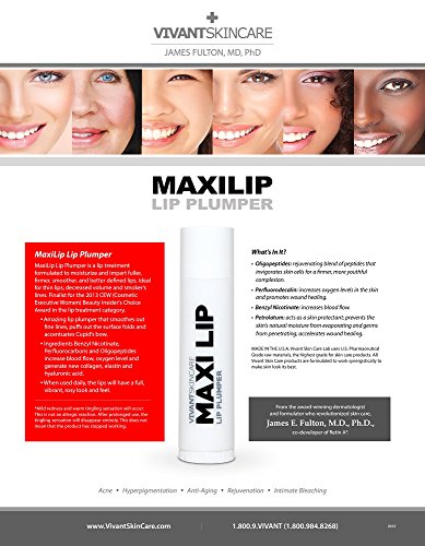 Vivant's Maxilip Lip Plumper is formulated to moisturize and impart fuller, firmer, smoother, and better defined lips. MADE in THE U.S.A. Vivant Skin Care Labs use U.S. Pharmaceutical Grade raw materials, the highest grade for skin care products. All Vivant Skin Care products are formulated to work synergistically to make your skin look its best.Feature
