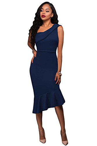 Skin tight and made to sculpt your curves, this party dress highlights your best assets. Cut from a figure-hugging stretchy fabric, this sexy dress comes with a single shoulder that creates a flirty touch, dignified ruffle hem and smooth zipped back closure.