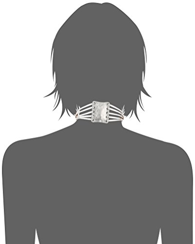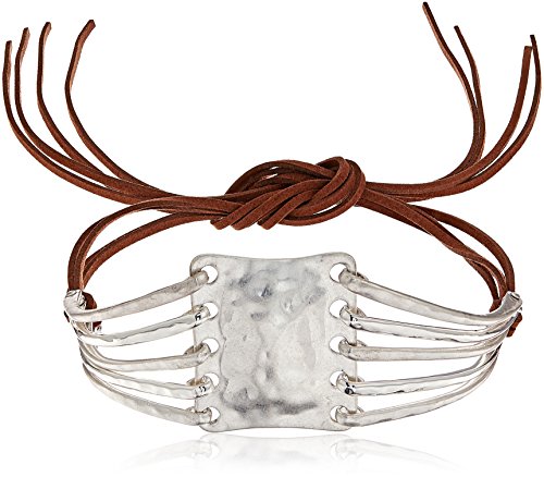 silver plated sculptural rectangle choker with brown suede adjustable necklace cords