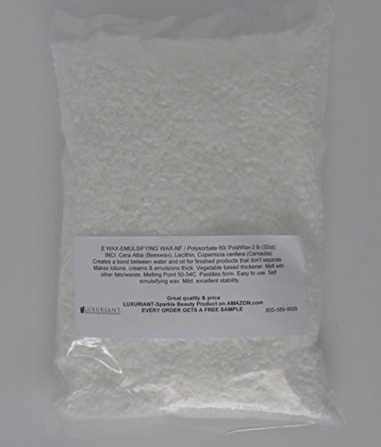 Emulsifying wax is an ingredient used in formulations to promote emulsification and can lead to great stability in the finished product. It also acts as a thickening agent. Emulsifying wax will help to bond oils and water based ingredients. Recommended use levels are 2-25%, usually 3-5% for lotions and 5-10% for creamsFeature