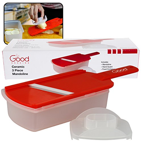 Ceramic Mandoline Slicer- 3 Piece Ceramic Slicer with Hand Guard and Food Container by Good Cooking