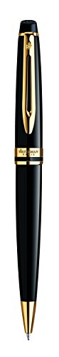 -. Title : Waterman Expert Ballpoint Pen, Medium Point, Black Lacquer with Gold Trim, Blue Ink Plus Blue Refill