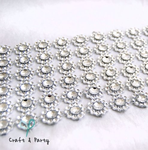 Silver Diamond Flower Shape Mesh Wrap Roll Faux Rhinestone Crystal Ribbon 4" x 10 yards (30 ft)