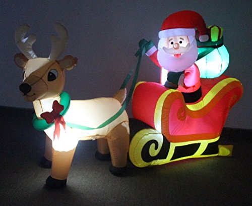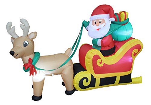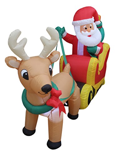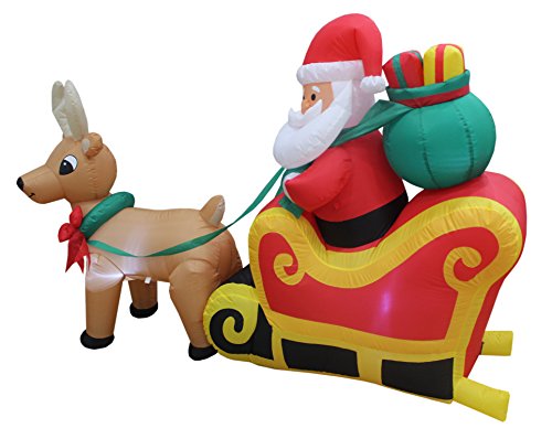 6 Foot Long Christmas Inflatable Santa Claus in Sleigh with Reindeer and Gift Yard Decoration