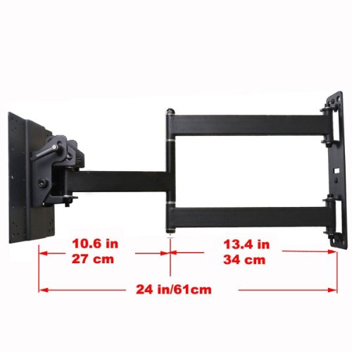-. Feature : Fits most TVs or Monitors from 23" up to 46" (check VESA and weight) / Wall mount come with extender adapter fit VESA 200x200,300x200,300x300,400x200,400x300, and 400x400mm / Heavy gauge steel construction support loading capacity up to 88 lbs / Full motion mount with tilting 20 degrees forward and backward, swiveling left and right; Post-installation level adjustment allows the TV to perfectly level / Articulating swing arms extend TV up to 24" from the wall; Integrated cable management design on arm